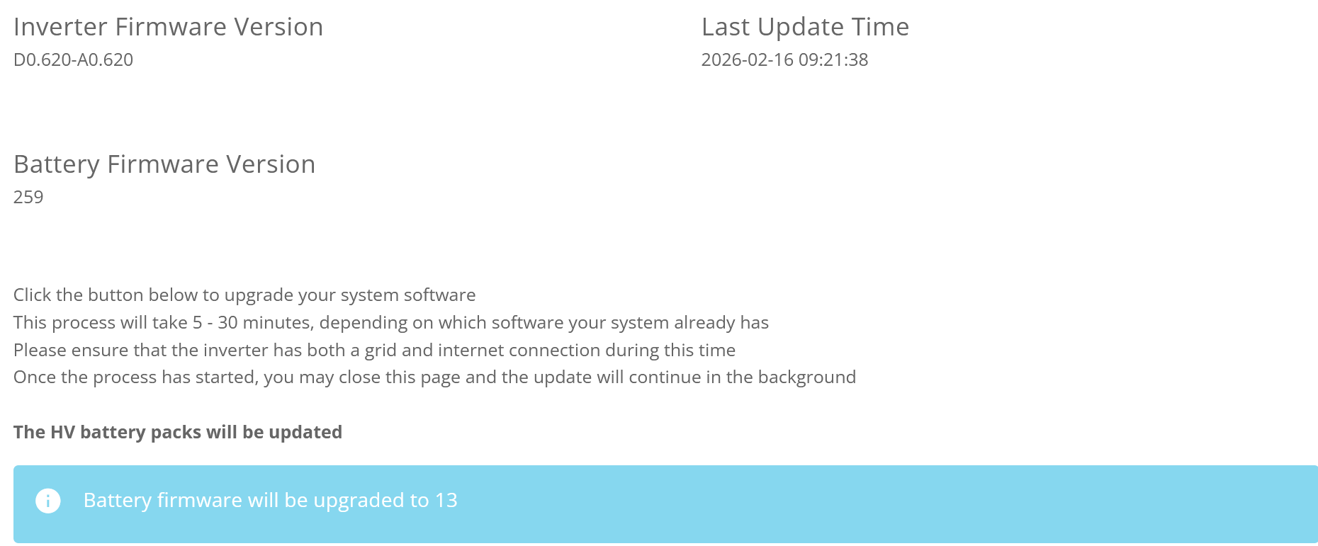 On 16th Feb the AIO firmware and BMS firmware were updated. BMS to V13.