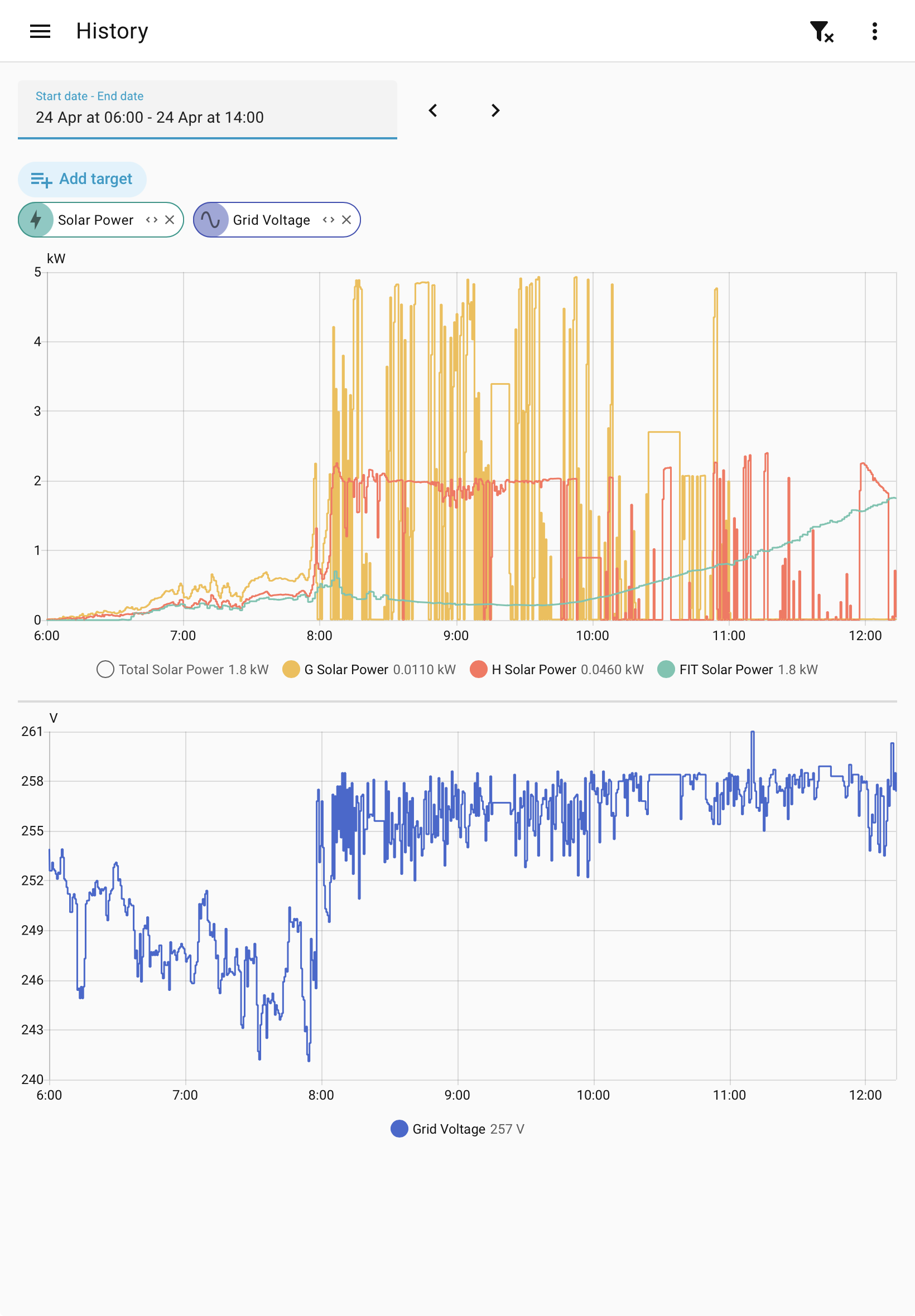 You can see it very graphically here, the solar power cutting out with high grid voltage