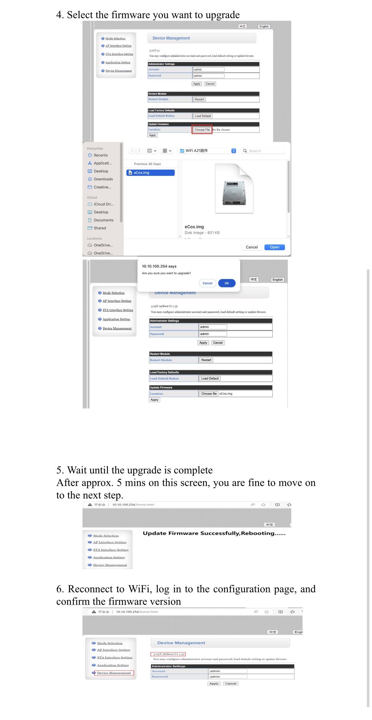 I have now established that my firmware is out of date but when I go to the the firmware update page there’s no files to select at 10.10.100.254/EN/uboot.html