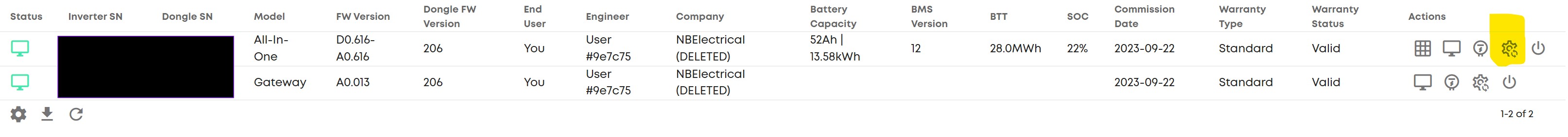 - From the list of inverters, select the “cog” symbol (re. Remote Control)…