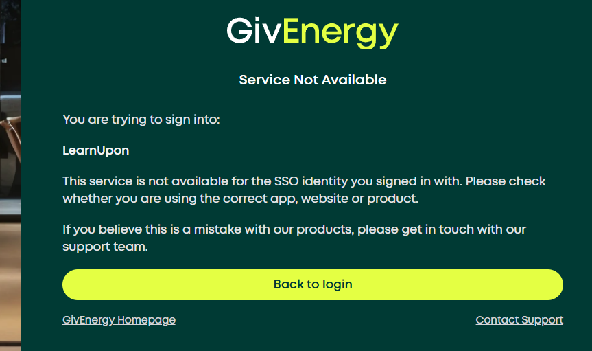 Hi, ok thanks. Here is the screen shot of what I get when I try to login using my SSO details after clicking on the learning hyperlink in the email GE sent.