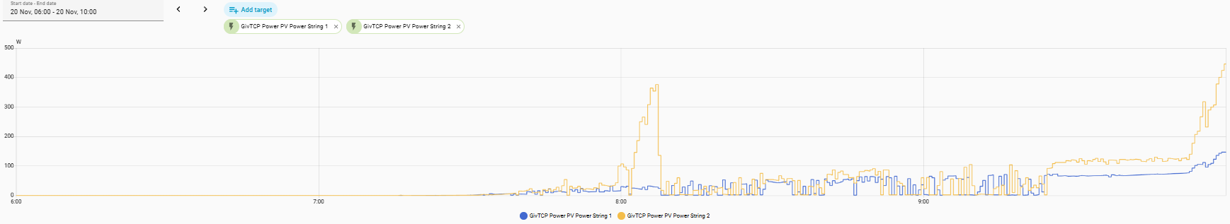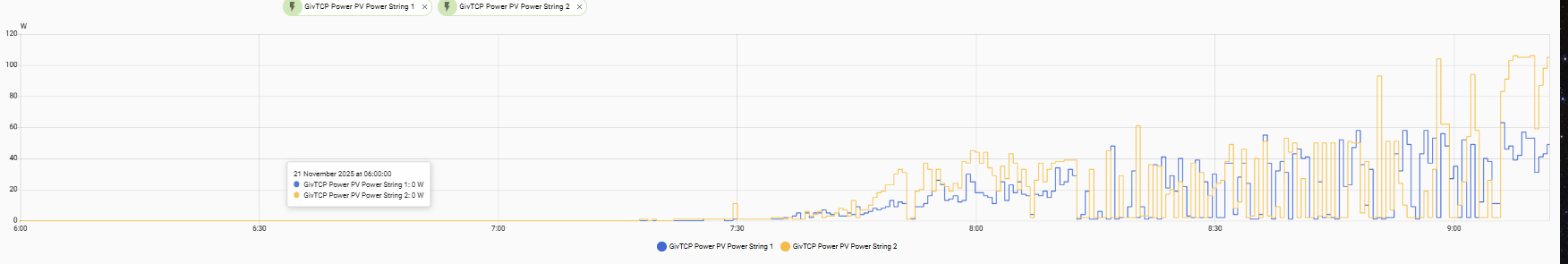 Note this is for each string - almost like the mppt isnt able to pick the sweet spot?