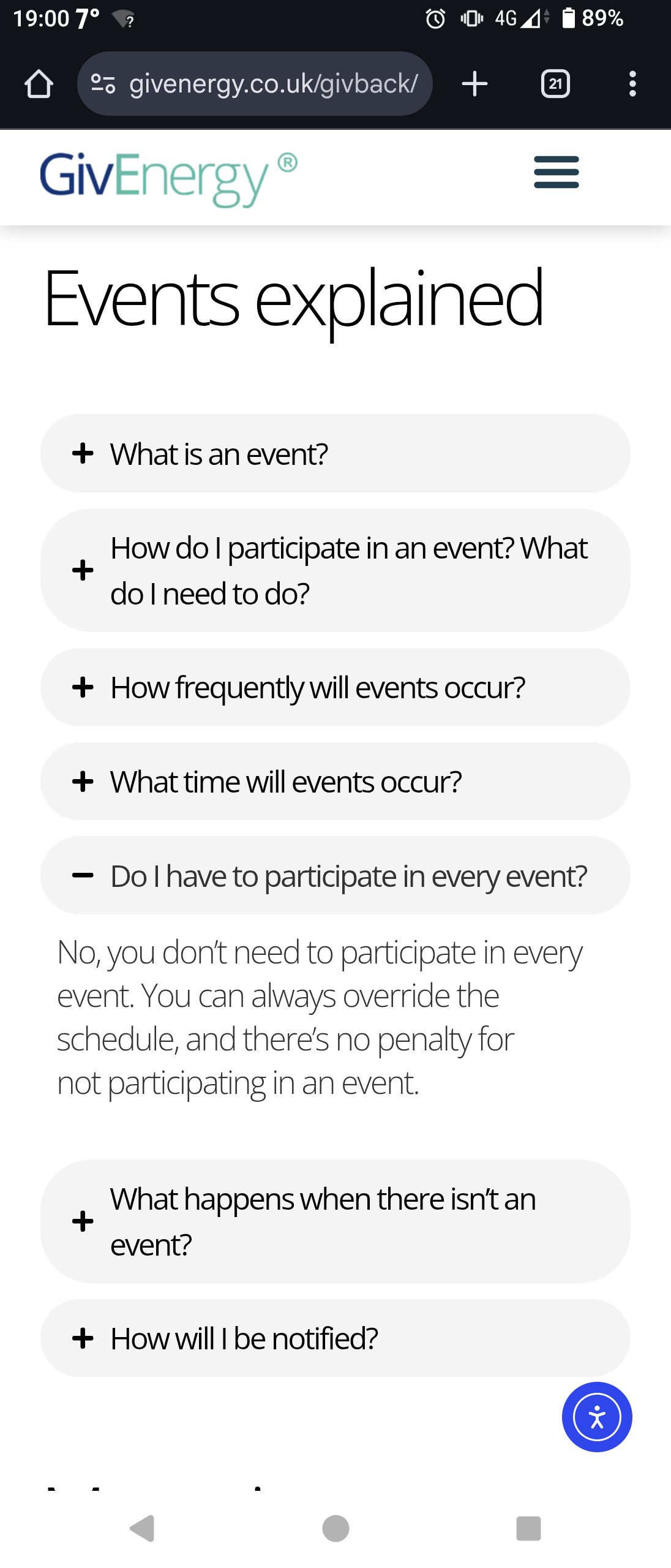 Hi all, has anyone else signed up for GivBack this year? I installed the new app a while ago, and when I looked just now, my inverter had been set to charge between 3pm and 5pm today, and I couldn’t alter anything via the app - when I logged in on desktop, it said “settings for this inverter are locked and controlled by GivBack” - I’ve had no notification of a GivBack event today, so is this a test?