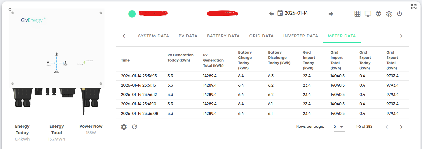 Related, I’m trying to pin down exactly what the data coming from the cloud portal means. EG. Looking now (13:30) at today’s figures shows Generation - 9.2kWh, Solar to Grid - 0.1kWh, Solar to Home - 3.6kWh, Solar to Battery - 4.4kWh. These last 3 total 8.1kWh which is 1.1kWh less than Generation! So I’m guessing that Generation is what is coming from the panels being the integral of Current * Voltage and is what has ‘gone into’ the inverter. Further, I’m guessing that Solar to Home is the actual benefit from solar I have got so far today. I’m assuming some Solar is powering the Inverter and some is lost in conversion to AC.