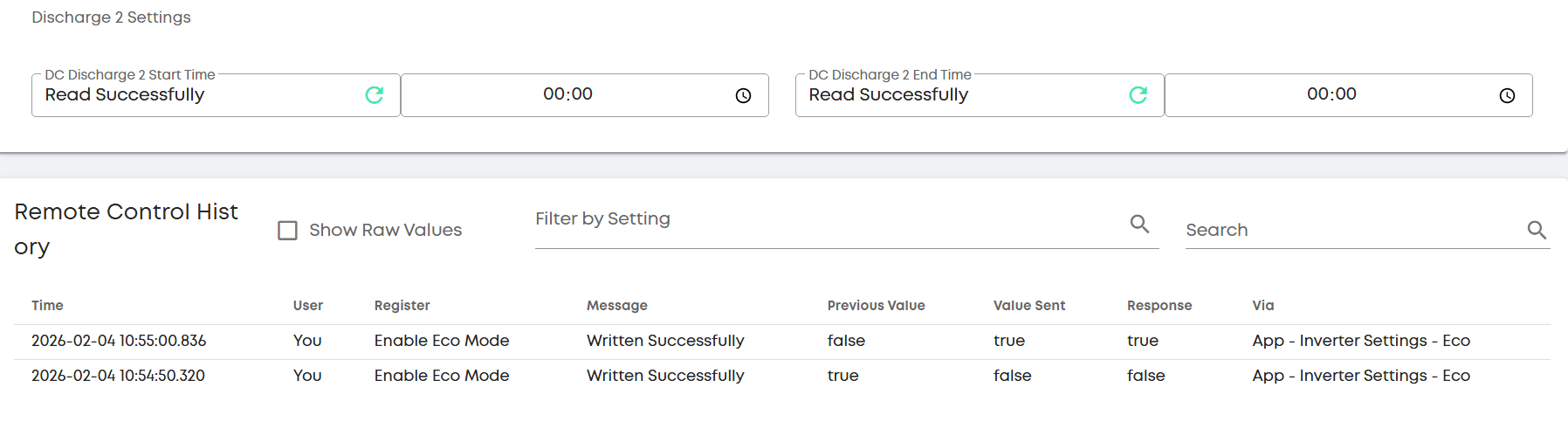 On mine the Enable DC Discharge = Off, which then ignores the Start/Stop Times, and just operates in ECO Mode outside the AC Charge times.