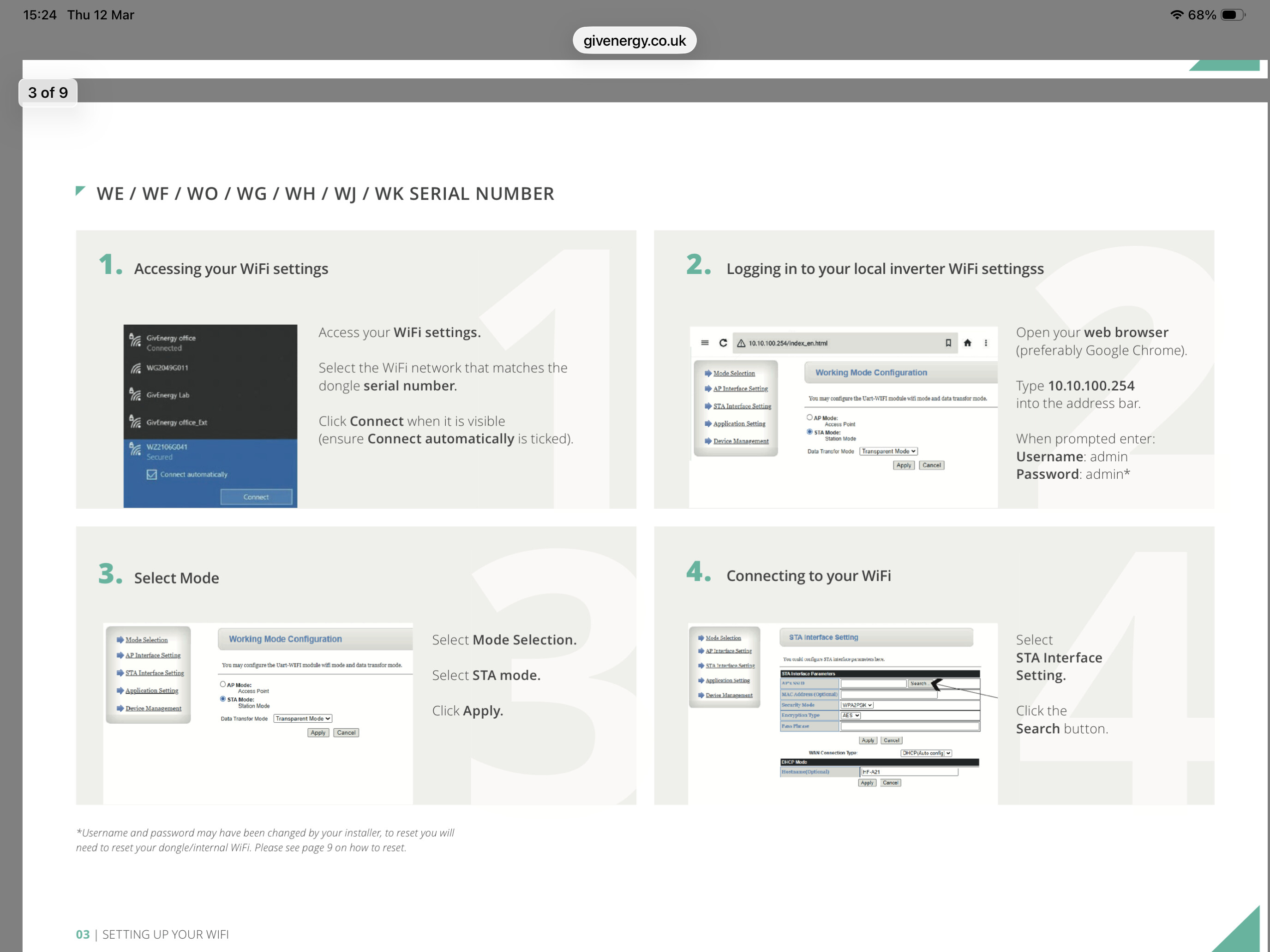 For the GivEnergy Gen 3 Hybrid Inverter internal Wi-Fi module (SSID like WHxxxxxxx):