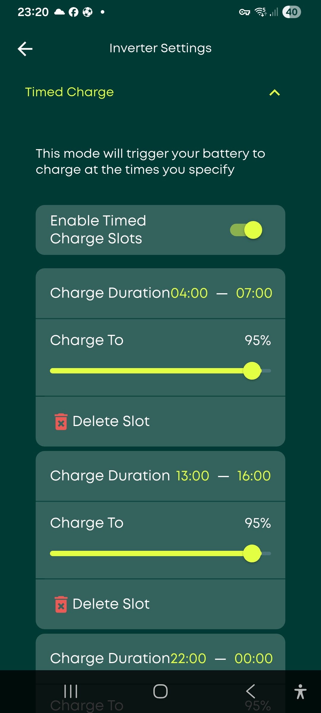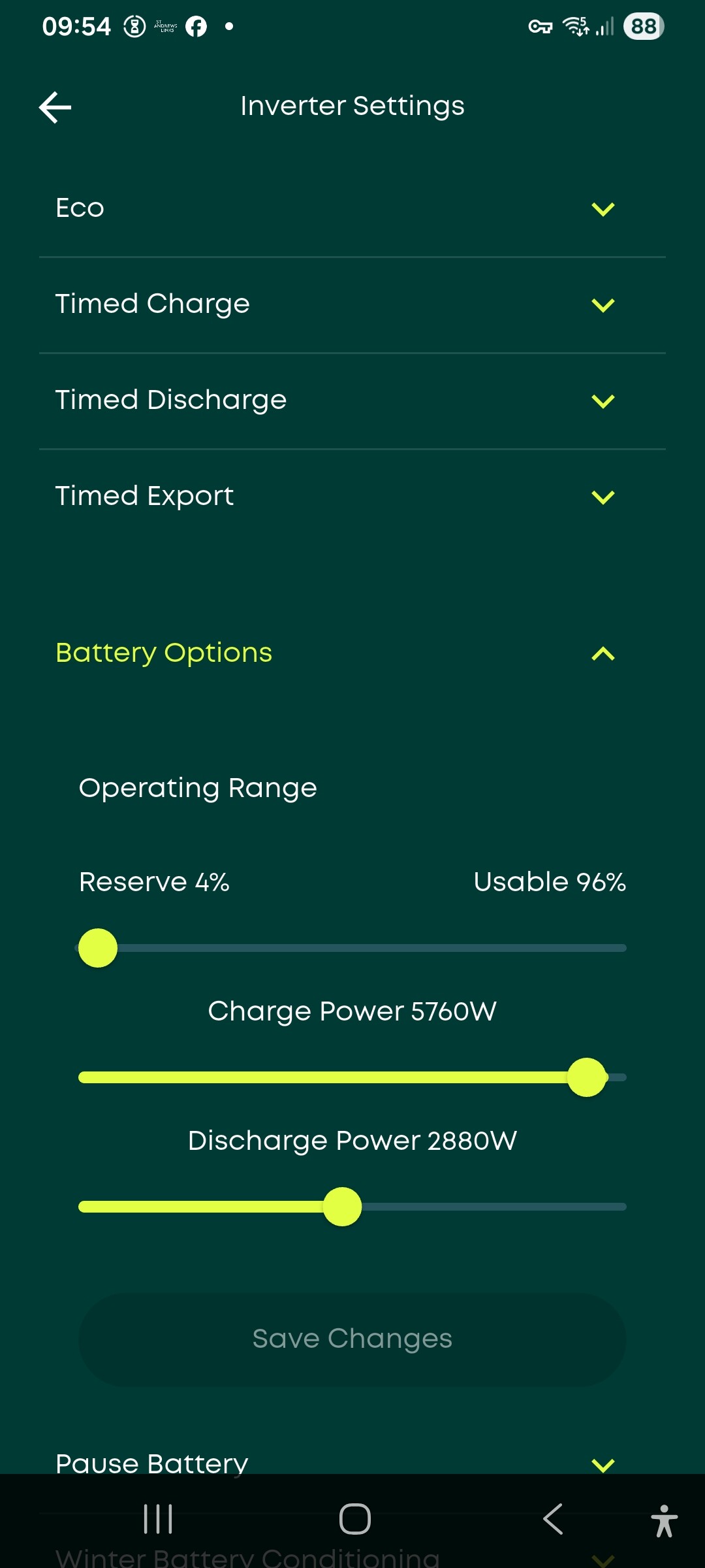 This last point may come as a nasty surprise if you have a Charge Period in force during daylight. It conflicts with Eco Mode’s priorities, but Eco Mode has in effect been turned off.