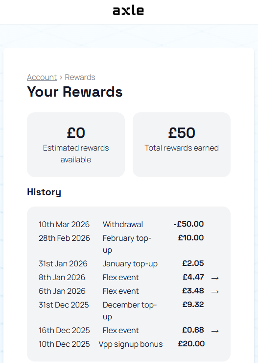 One thing to be aware of, it is not entirely clear whether Axle is compatible with some of the Octopus smart tariffs, in particular IOG, IOF and Snug all have a clause that say you can’t join any other Demand Flexibility Service provider. I’ve not heard of anyone being asked to choose between their existing tariff with Octopus Octopoints or Axle, but it is something to be potentially aware of.