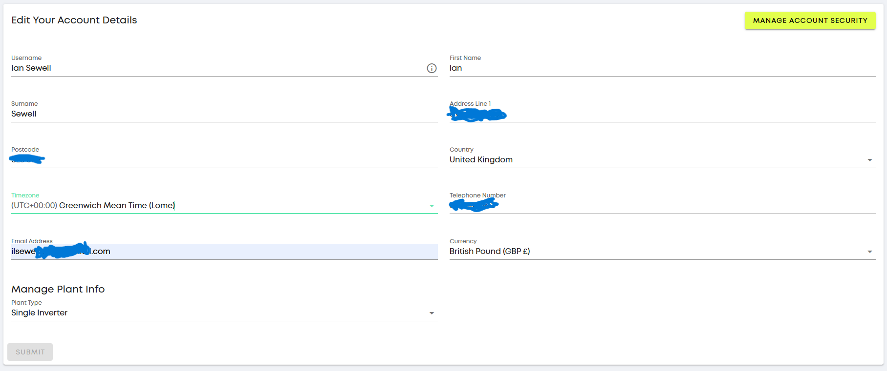 I have changed my email but the submit button on account details is always grayed out. It implies something is missing but all the fields are filled in and changing any of them has no effect.